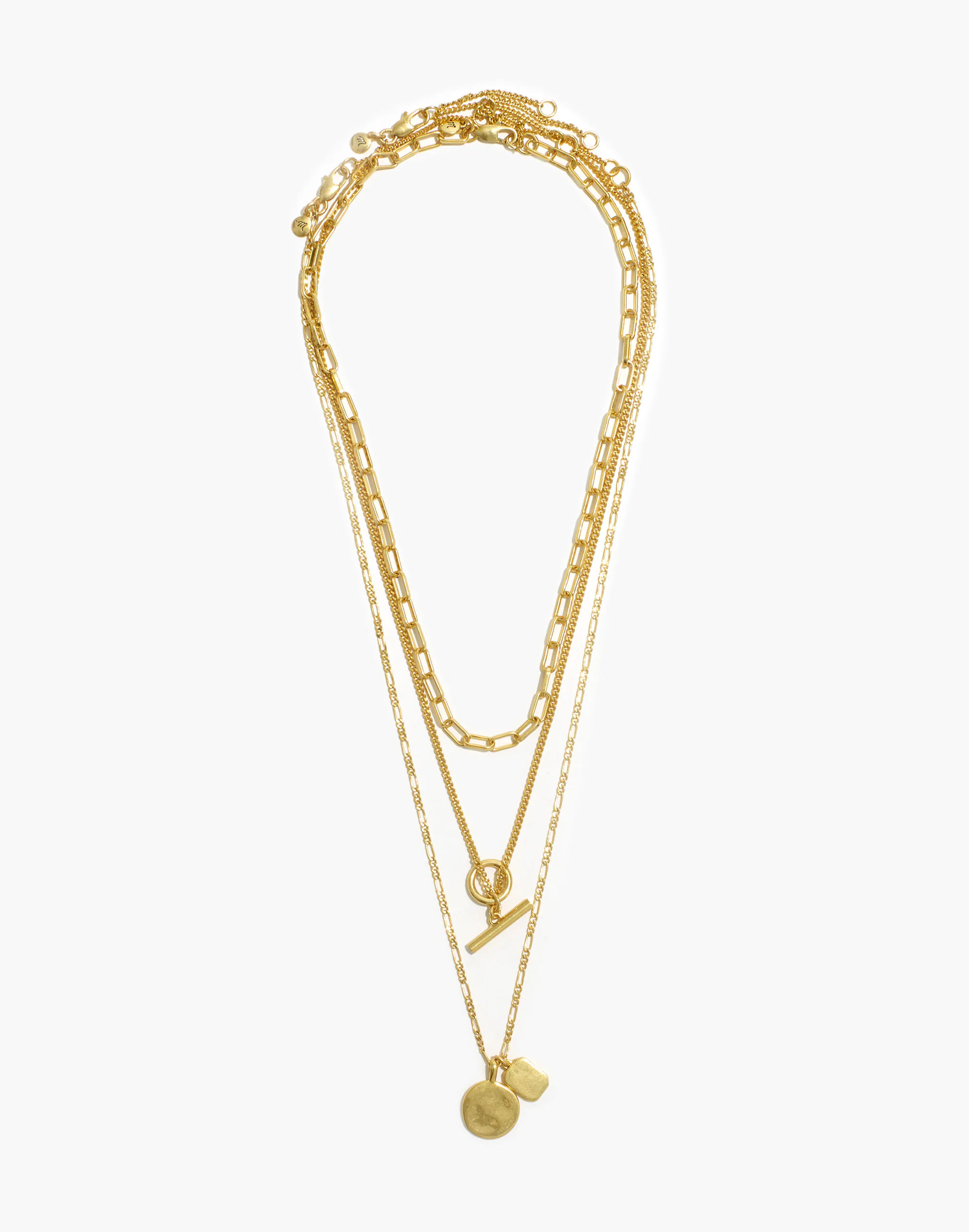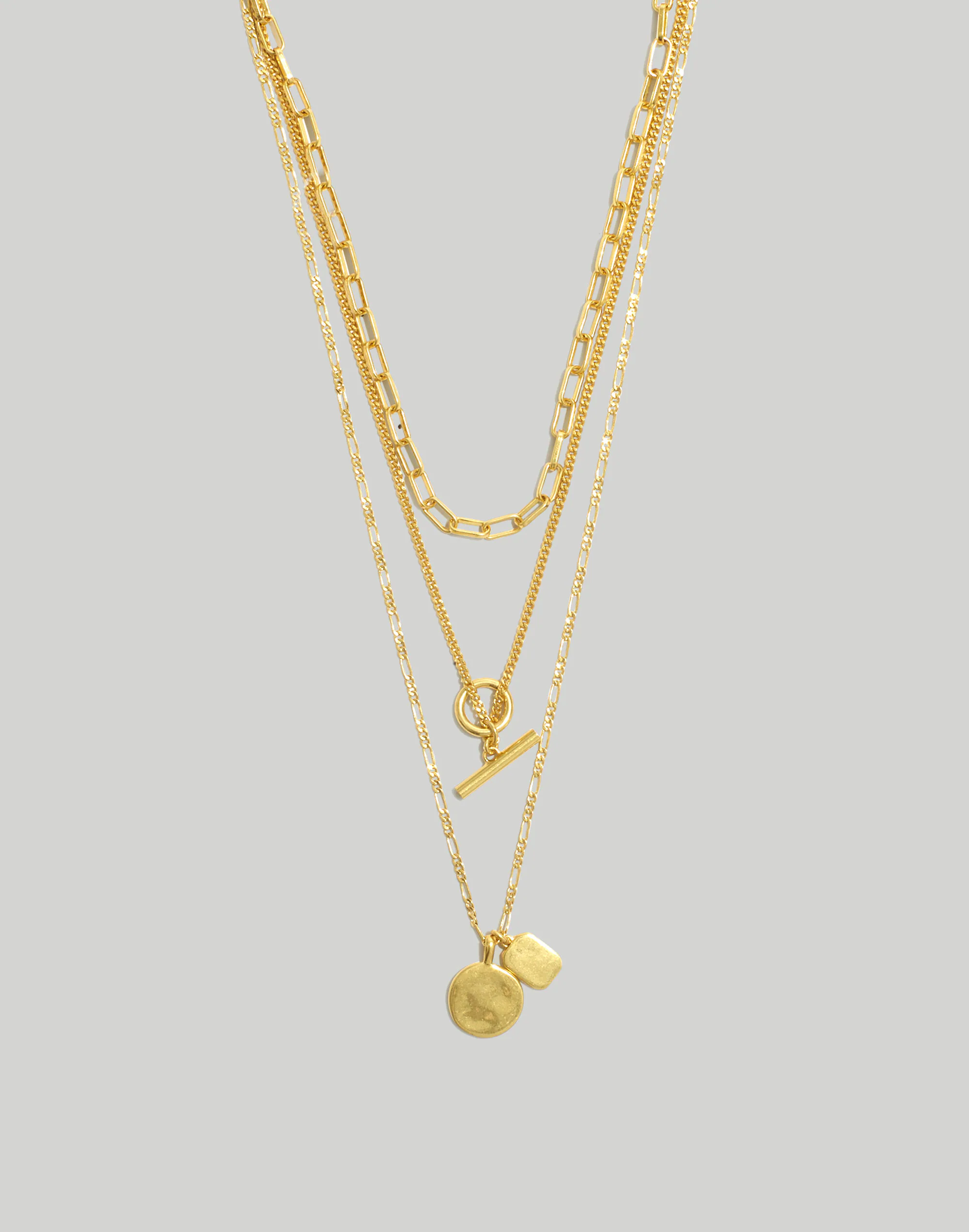 Three separate chains, a million possibilities. Necklaces guaranteed to make your sweats look expensive.