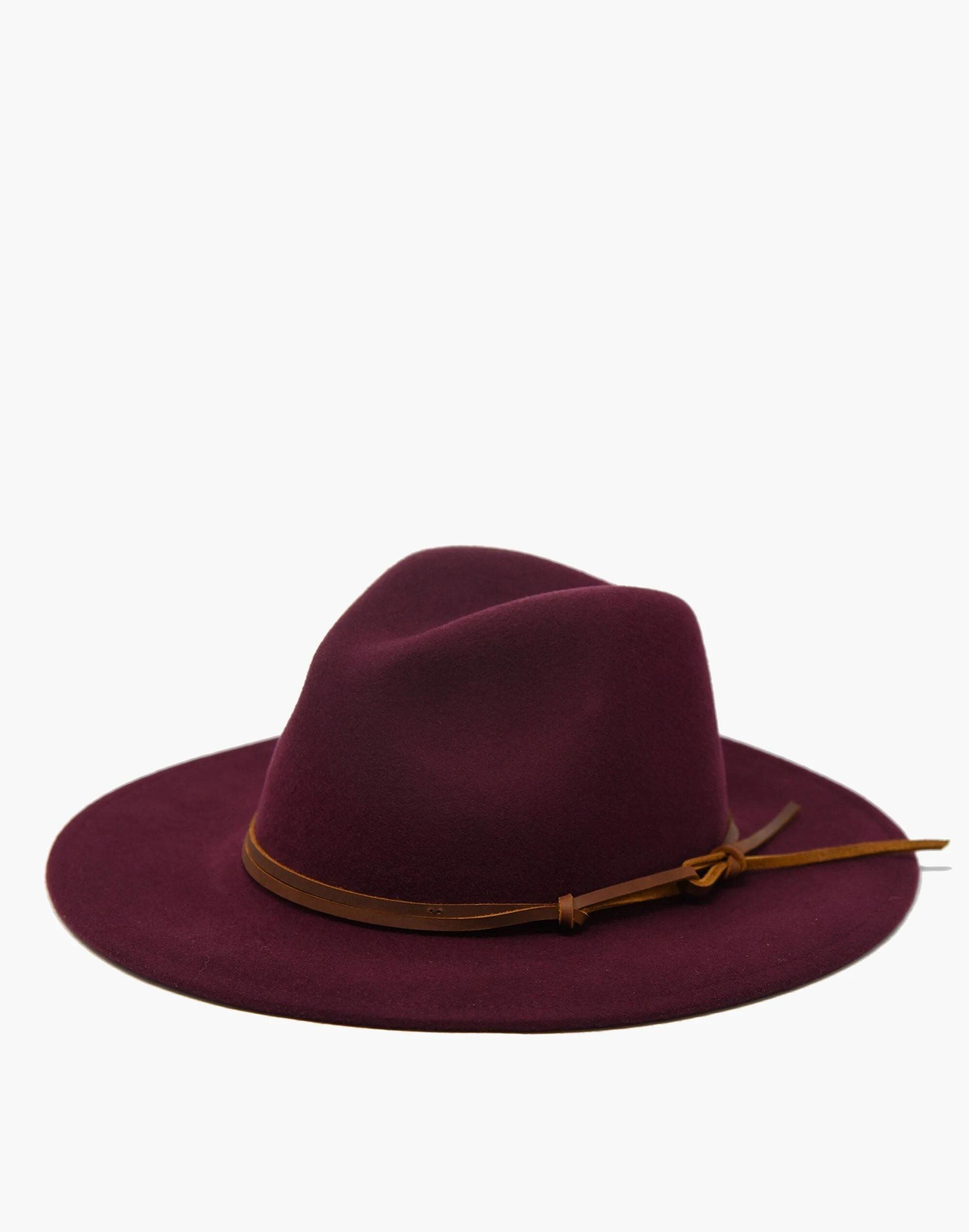 Designed in California by husband and wife duo Michael Hagen and Hedda Staines, WYETH is devoted to best-of-the-best headgear. Made from hand-blocked wool, this rancher-style hat has a medium-length brim and a simple leather band tied in a real Western knot.