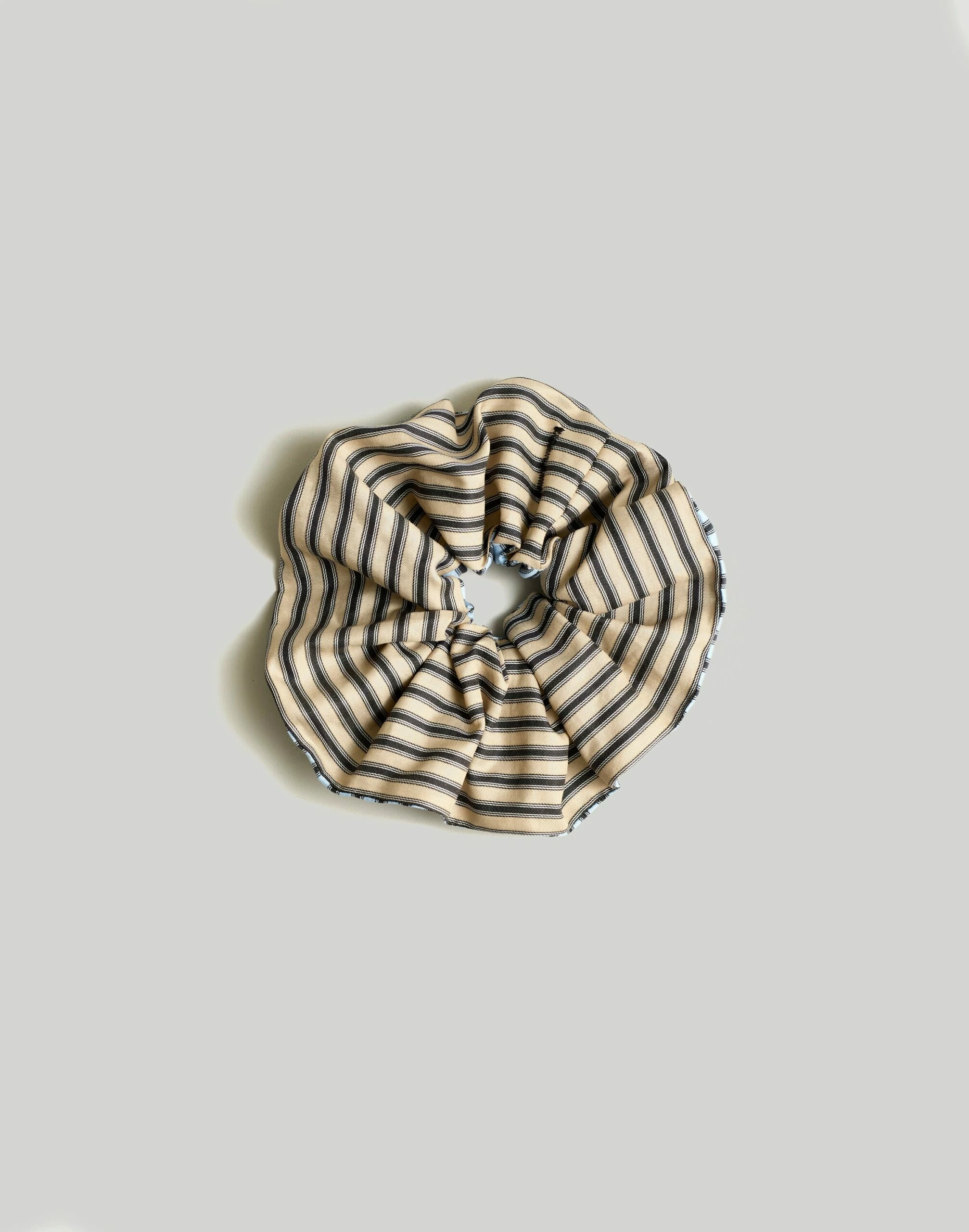 We teamed up with our dear friend (and Madewell alum) Olivia Villanti of bespoke label Chava Studio on an exclusive collection of menswear-inspired sets. Handmade in her family’s Mexico City atelier, this oversized scrunchie is crafted of fabric scraps left over from the matching striped shirt.